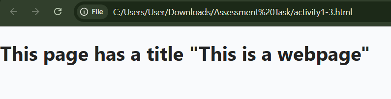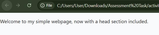 In this activity, I learned the basic structure of an HTML document, including the use of tags such as <html>, <head>, and <body>. I practiced writing simple HTML code and understood how content is displayed in a web browser.